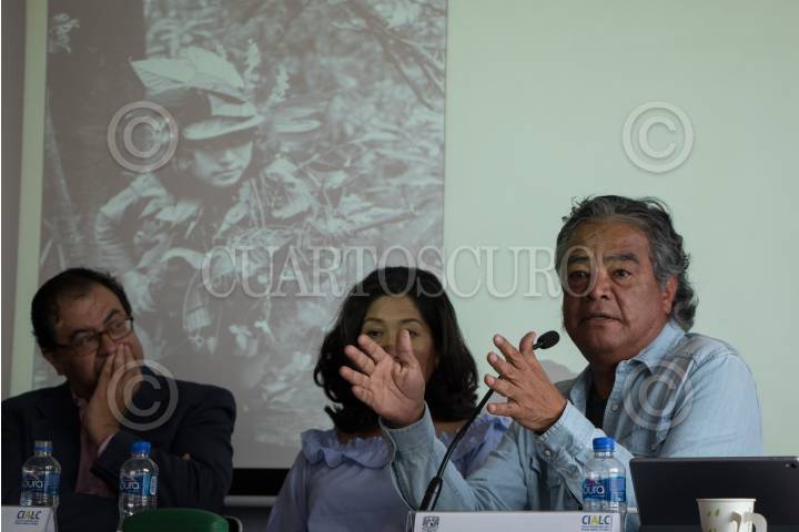 ZACATECAS, ZACATECAS, 16MARZO2018.- Ayer en la fototeca de Zacatecas se presento la edición 148 de la revista Cuartoscuro, misma que está dedicada al trabajo del fotoperiodista zacatecano Pedro Valtierra, del periodo de guerrilla en Guatemala en la década de los años ochenta, en los que documento también los movimientos armados de Nicaragua y El Salvador. En la tertulia fotográfica participaron el docente de la Unidad Académica de Antropología, Daniel Hernandez Palestino de la Universidad Autónoma de Zacatecas (UAZ), así como, el escritor Víctor del Real y el historiador Juan Carlos Basabe. FOTO: CARLOS SEGURA /CUARTOSCURO.COM
