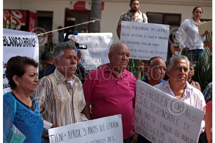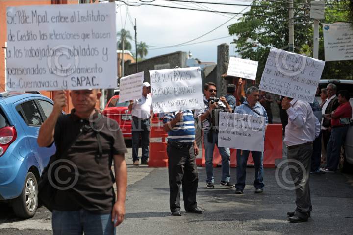 CUERNAVACA, MORELOS, 19JUNIO2017.- Jubilados del Ayuntamiento de la capital bloquearon algunas calles adyacentes al edificio en exigencia de una audiencia con el alcalde Cuauhtémoc Blanco. Los pensionados denuncian que el instituto de crédito del estado les retiene el dinero. FOTO: MARGARITO PÉREZ RETANA /CUARTOSCURO.COM