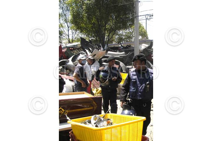 MÉXICO, D.F., 07JUNIO2010.- Elementos de la policia, desalojaron un predio con más de 60 Toneladas de autopartes ubicado en Doctor Ugarte casi esquina con Eje Central en la colonia Doctores en la delegación Cuauhtemoc. FOTO: LUIS CARBAYO/CUARTOSCURO.COM