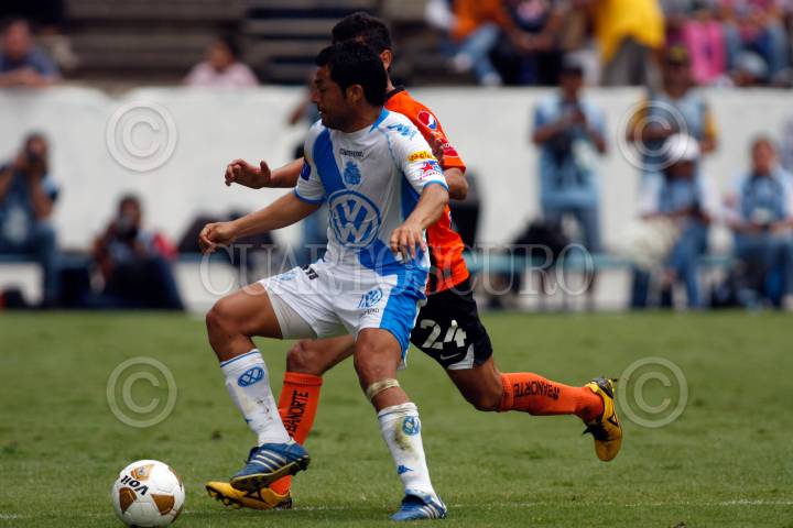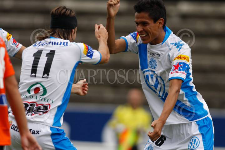 PUEBLA, PUEBLA, 29AGOSTO2010.- El Puebla de la Franja derrotó 3 goles a 1 a los Tuzos del Pachuca, durante el partido de la jornada 6 que se disputaron en el estadio Cuauhtémoc. FOTO: FRANCISCO GUASCO/CUARTOSCURO.COM