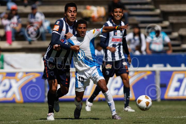 PUEBLA, PUEBLA, 07NOVIEMBRE2010.- Con dos goles contra cero de Felipe Ayala y Yasser Corona, el Puebla de la Franja ganó el partido de la jornada 16 en la que enfrentaron a los Rayados del Monterrey, durante su visita en el estadio Cuauhtémoc. FOTO: FRANCISCO GUASCO/CUARTOSCURO.COM