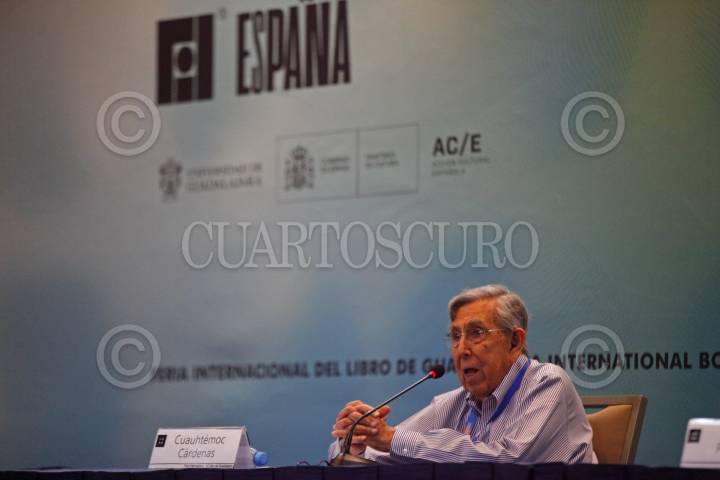 GUADALAJARA, JALISCO. 04DICIEMBRE2024.- Cuauhtémoc Cárdenas durante su participación en el foro ”Ante la Situación Nacional: Reflexiones y Propuestas” en FIL Pensamiento, esto en el marco de la edición 38 de la Feria Internacional del Libro De Guadalajara (FIL), en donde el País Invitado de Honor es España. FOTO: FERNANDO CARRANZA GARCIA / CUARTOSCURO.COM