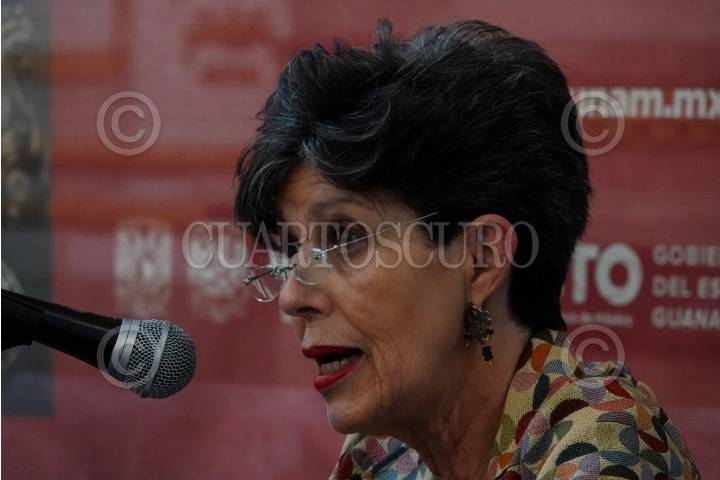 Janine M. Otálora durante la presentación de su libro "Por una Democracia Progresista" en la 44 Feria Internacional del Libro del Palacio de Minería.