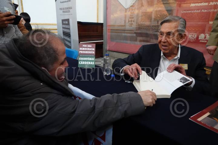 Cuauhtémoc Cárdenas Solórzano previo a la presentación de su libro "Por una Democracia Progresista" en la 44 Feria Internacional del Libro del Palacio de Minería.