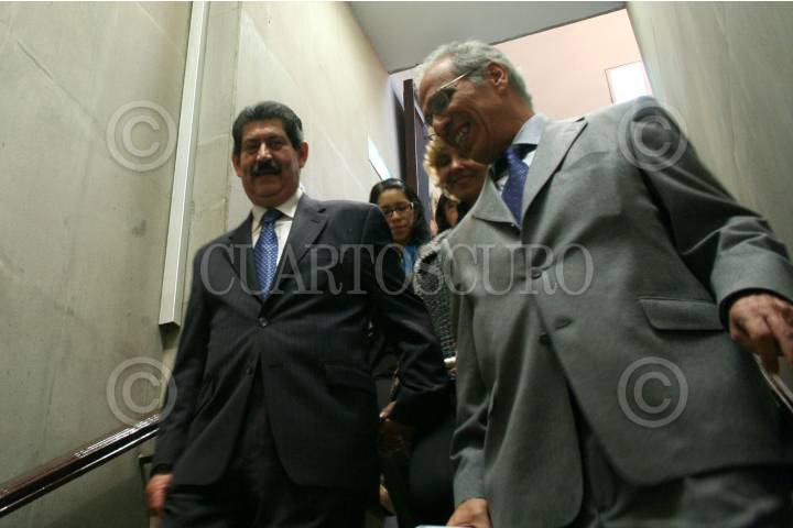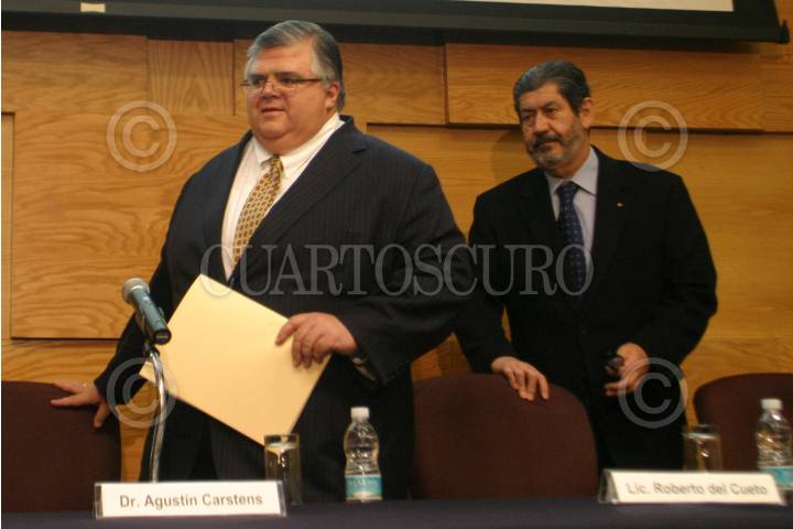 MÉXICO, D.F., 27ENERO2010.- Agustin Carstens Carstens, Gobernador del Banco de México y Roberto del Cueto Legaspi, Subgobernador, ah su llegada a la presentación del "primer" informe del Gobernador sobre la "Inflación Octubre-Diciembre 2009 y Programa Monetario para el 2010". Carstens aseguró que este año México tendrá un recuperación económica favorable. FOTO: MISAEL VALTIERRA/CUARTOSCURO.COM