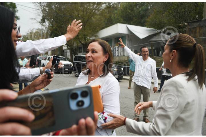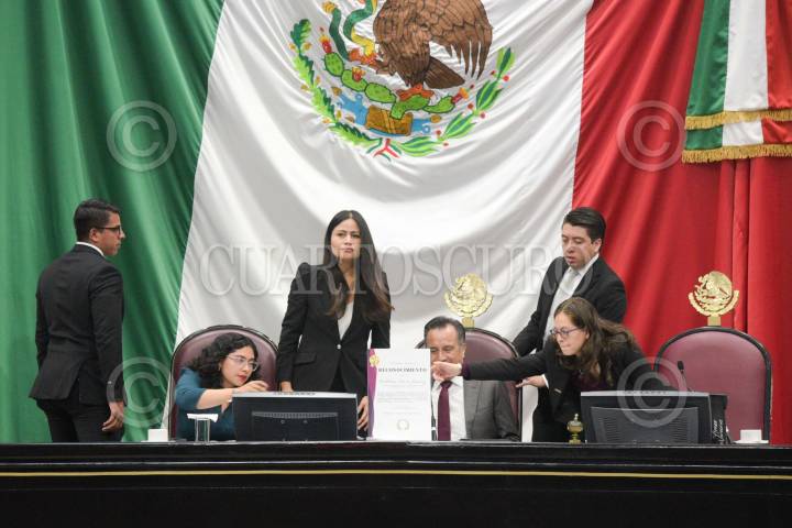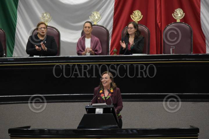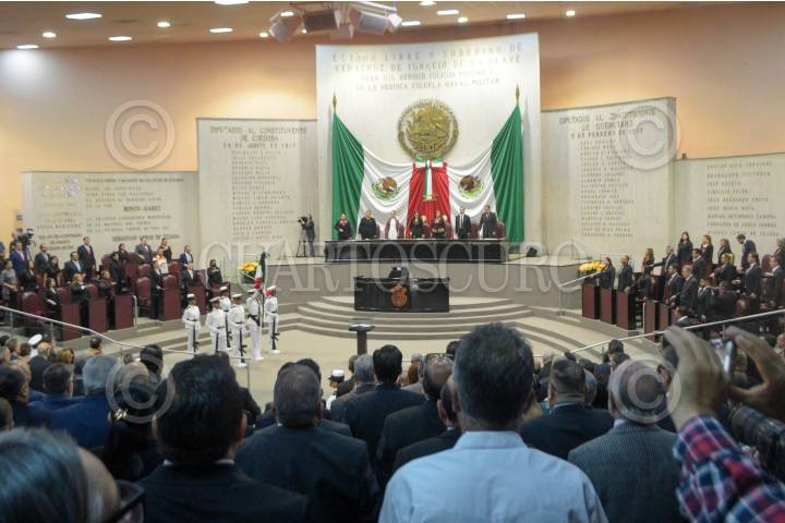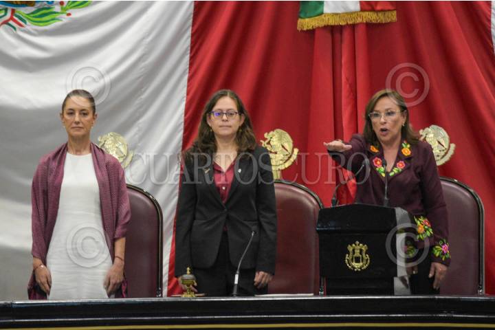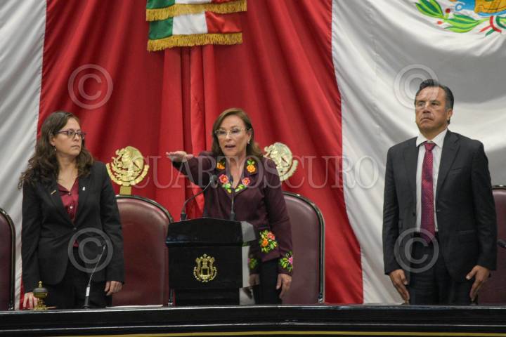 XALAPA, VERACRUZ, 01DICIEMBRE2024.- Rocio Nahle tomo protesta como gobernadora constitucional de Veracruz. Estuvo acompañada de la Presidenta de México, Claudia Sheinbaum, y el gobernador saliente, Cuitláhuac García. El protocolo se realizó en el Congreso del Estados. FOTO: YERANIA ROLÓN/CUARTOSCURO.COM