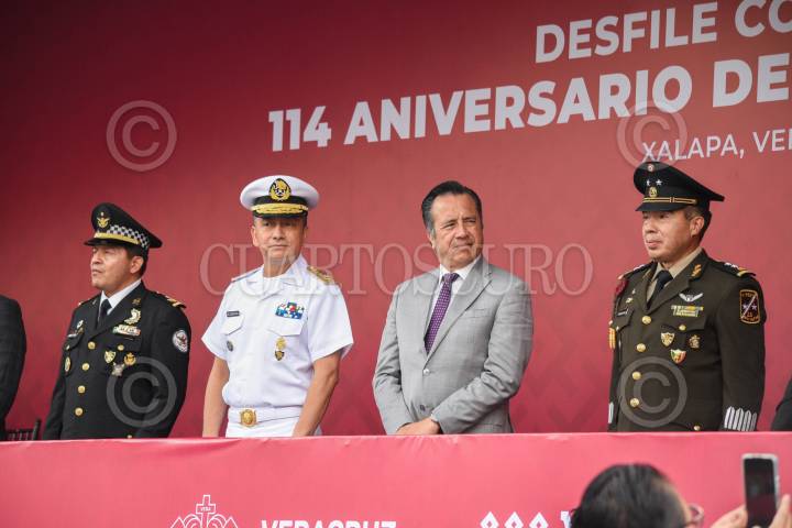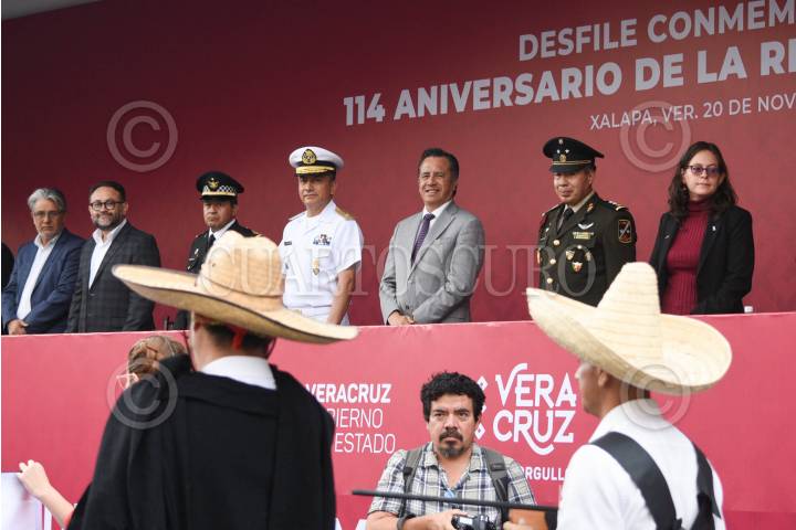 XALAPA, VERACRUZ, 20NOVIEMBRE2024.- Cuitláhuac García, gobernador de Veracruz, encabezó el desfile cívico militar del 114 Aniversario de la Revolución Mexicana. FOTO: YERANIA ROLÓN/CUARTOSCURO.COM