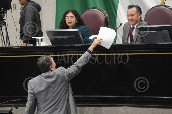 XALAPA, VERACRUZ, 29NOVIEMBRE2024.- Cuitláhuac García, gobernador de Veracruz, compareció por última ocasión en el Congreso del Estado. Sin embargo los diputados de oposición, Héctor Yunes Landa e Indira Rosales, reprocharon malas gestiones y resultados en su administración. FOTO: YERANIA ROLÓN/CUARTOSCURO.COM
