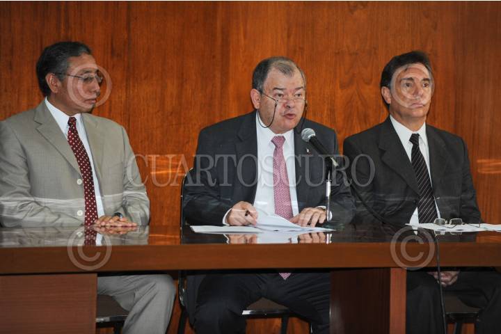 MÉXICO, D.F., 30JUNIO2011.- El presidente del Tribunal Superior de Justicia del DF, Edgar ElÌas Azar, acompañado por los magistrados Salvador Avalos, Guillermo Arroyo y Norma Lagunes; ofreció una conferencia de prensa para hablar sobre el proceso llevado a cabo en la evaluaciÛn de jueces, destacando la continuidad del juez de la polémica película "Presunto Culpable". FOTO: IVAN MENDEZ/CUARTOSCURO.COM