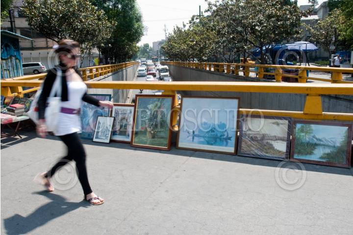 MÉXICO, D.F., 12MARZO2009.- Un vendedor ofrece sus cuadros en plena avenida Reforma, en su cruce con Lieja, todo con tal de ganar un dinero extra. FOTO: ISAAC ESQUIVEL/CUARTOSCURO.COM