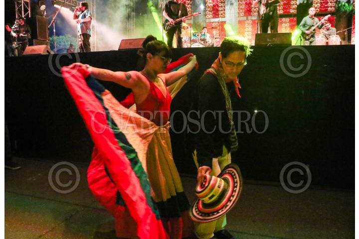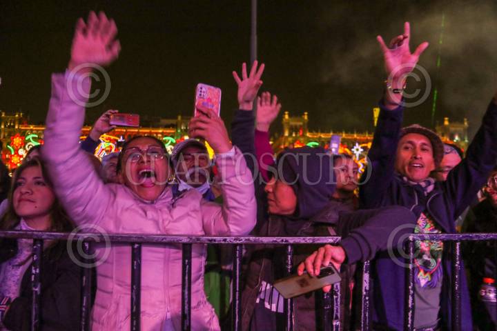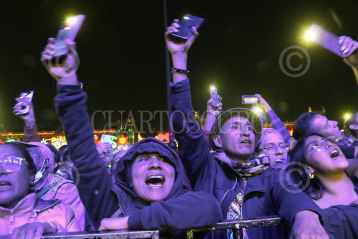 CIUDAD DE MÉXICO. 27DICIEMBRE1024.- Ante miles de capitalinos, está noche en el Zócalo Capitalino se dieron cita para escuchar a la "Ronda Bogotá", que deleitó a sus seguidores con canciones como "Macondo", "Los Caminos de la Vida", "Cumbia sobre el Río", entre otros temas. Los Regiomontanos interpretaron cumbias Colombianas. FOTO: VICTORIA VALTIERRA/CUARTOSCURO.COM