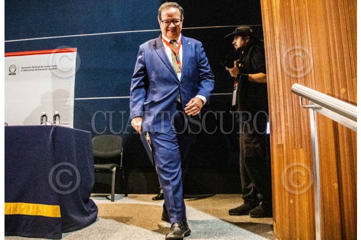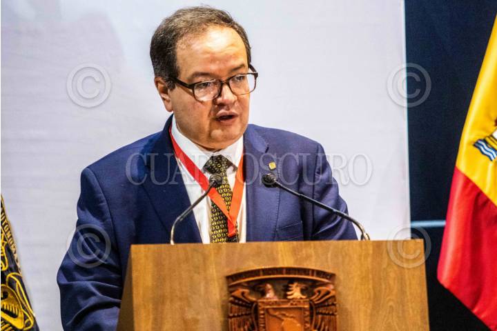 CIUDAD DE MÉXICO. 04MARZO2024.- El rector de la UNAM, Leonardo Lomelí Vanegas; encabezó la Cumbre de rectoras y Rectores "México-España", que se lleva acabo en el auditorio Alfonso Caso de la torre de Humanidades de la máxima casa de estudios, esta mañana. FOTO: VICTORIA VALTIERRA/CUARTOSCURO.COM