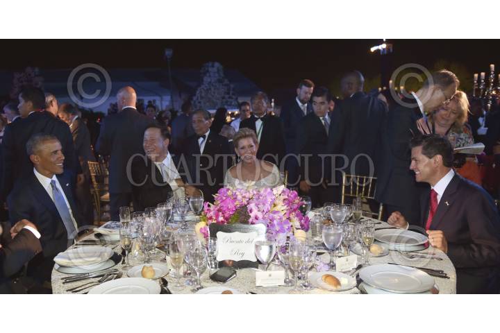 CIUDAD DE PANAMÁ, PANAMÁ, 10ABRIL2015.- Enrique Peña Nieto, Presidente de México y Barack Obama, presidente de los Estado Unidos de América, participaron en la Cena de Estado que ofreció Juan Carlos Varela Rodríguez, Presidente de la República de Panamá, y su esposa, Lorena Castillo de Varela, en honor de los Jefes de Estado que asisten a la VII Cumbre de las Américas que se lleva a cabo en esta ciudad. FOTO: PRESIDENCIA /CUARTOSCURO.COM