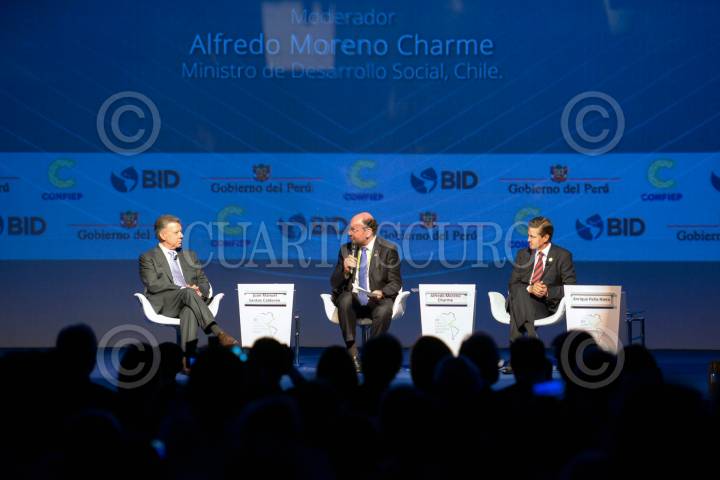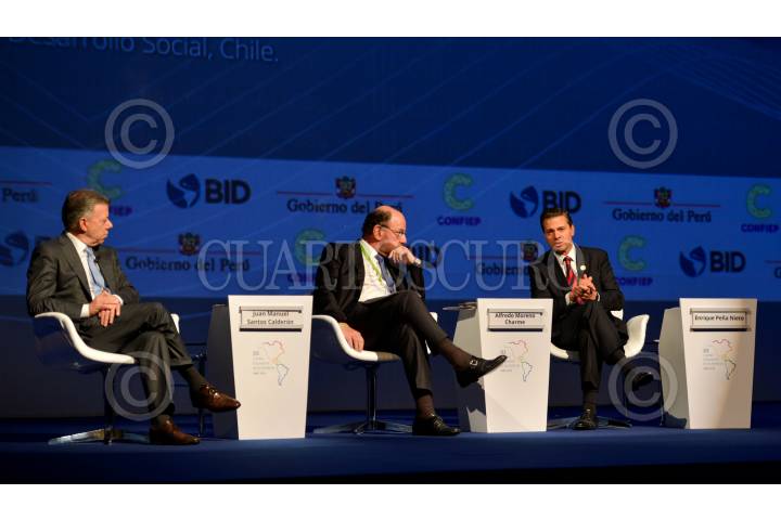LIMA, PERÚ, 13ABRIL2018.- El presidente Enrique Peña Nieto durante su participación en el conversatorio de la III Cumbre Empresarial de las Américas que sostuvo junto a su homólogo de Colombia, Juan Manuel Santos Calderón. FOTO: PRESIDENCIA /CUARTOSUCO.COM