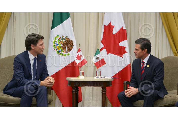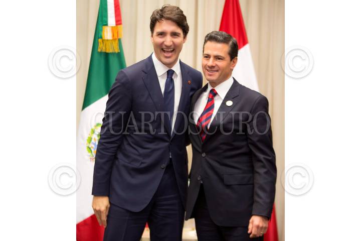 LIMA, PERÚ, 13ABRIL2018.- En el marco de las actividades de la VIII Cumbre de las Américas, el Presidente Enrique Peña Nieto sostuvo una reunión con el Primer Ministro de Canadá, Justin Trudeau, en la que dialogaron sobre el avance en las negociaciones del TLCAN. FOTO: PRESIDENCIA /CUARTOSCURO.COM