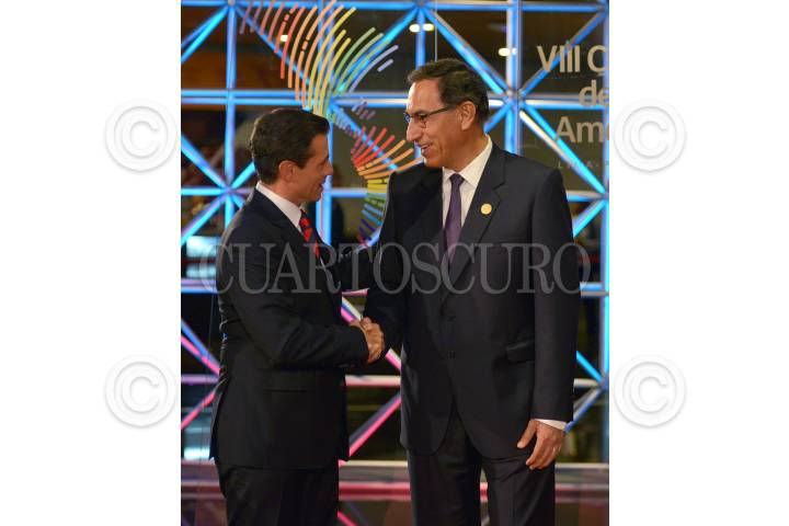 LIMA, PERÚ, 13ABRIL2018.- El Presidente de México, Enrique Peña Nieto, acompañado de su esposa, Angélica Rivera de Peña, acudió esta tarde a la ceremonia de inauguración de la VIII Cumbre de las Américas, en el Gran Teatro Nacional, en esta ciudad. FOTO: PRESIDENCIA /CUARTOSCURO.COM