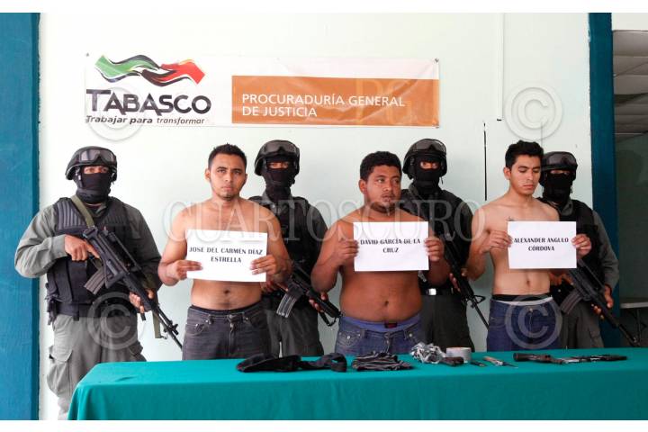 VILLAHERMOSA, TABASCO, 25JUNIO2010.- Dos peligrosas bandas de secuestradores de infantes fueron capturadas en los municipios de Nacajuxa y Cunduacan. Ambas bandas fueron presentadas en las instalaciones de la Policía Ministerial y están relacionadas con la celula delictiva "Zeta". FOTO: MARCO POLO GUZMÁN HERNÁNDEZ/CUARTOSCURO.COM