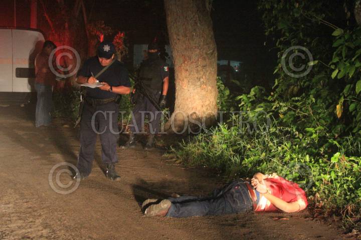 CUNDUACÁN, TABASCO, 08DICIEMBRE2010.- Un joven de aproximadamente 25 años de edad fue encontrado sin vida esta madrugada con varios impactos de arma de fuego y junto a un narco-mensaje en las inmediaciones de la ranchería Plátano y Cacao a orillas de la carretera federal Cárdenas - Villahermosa. FOTO: MARCO POLO GUZMÁN HERNÁNDEZ/CUARTOSCURO.COM