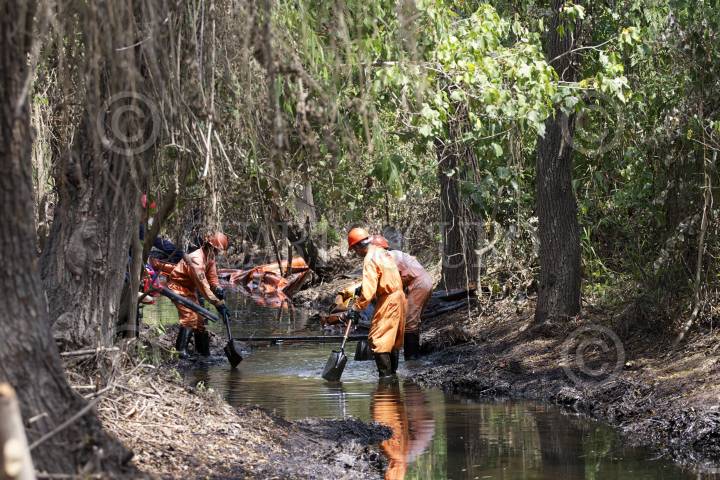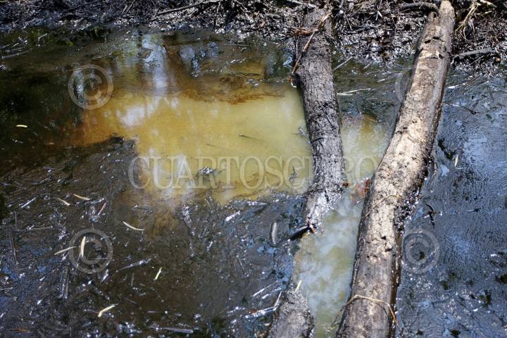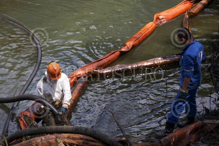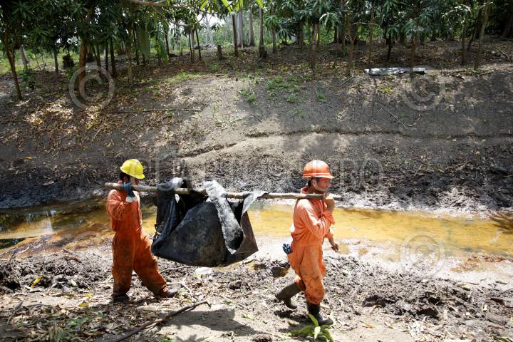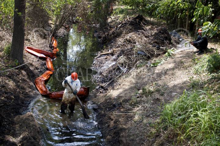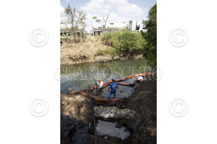 CUNDUACAN, TABASCO, 12ABRIL2012.- Continua causando daño al ecosistema el derrame de hidrocarburo sobre el arroyo El Veladero, en el cual se han vertido grandes cantidades de crudo que ocasionan desde hace siete días la ruptura en la fuga de un ducto de 24 pulgadas de diámetro en la bateria Betolla-Jujo propiedad de PEMEX, que se ubica en los alrededores del ejido Mantilla. Pobladores han señalado que el daño a tomado dimensiones alarmante en las comunidades de Ventura, Mantilla-Bellota, Santo Tomas, Felipe Carrillo, Felipito, La Chonita. El delegado de la PROFEPA Antonio Lope Baez, ha minimizado la crisis ecológica informando que el crudo solo se a esparcido en un kilómetro y medio. FOTO: MARCO POLO GUZMÁN HERNÁNDEZ/CUARTOSCURO.COM