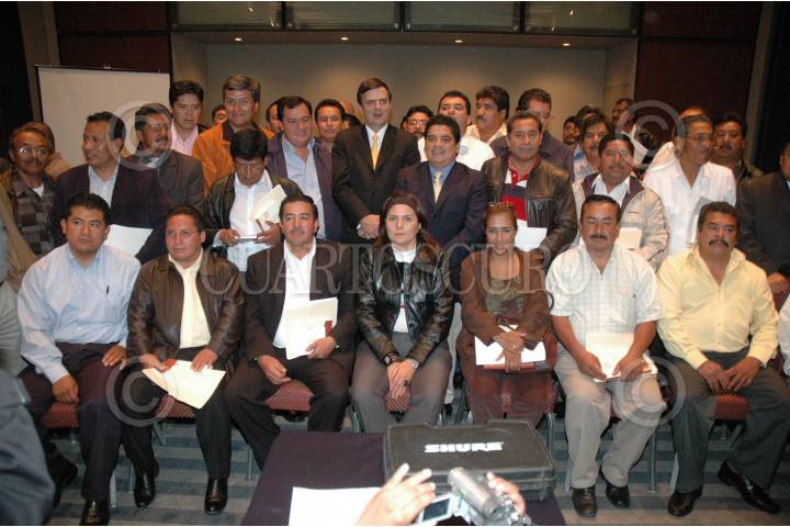 MÉXICO, D.F., 08JUNIO2008.- Con la presencia del Jefe de Gobierno Marcelo Ebrard Casaubon ademas de la participación de 60 municipios de 12 estados de la República la Asociación de Autoridades Locales de México (ALMAC), que encabeza el alcalde de Ecatepec, José Luis Gutiérrez Cureño, conformó el Comité Promotor de la Consulta Nacional de la Reforma Energética para que los habitantes de 407 municipios gobernados por el PRD den su opinión sobre la propuesta del ejecutivo federal en materia energetica. En un hotel de la Ciudad de México, las autoridades municipales de 60 municipios del país acordaron solicitar al Instituto Federal Electoral que participe en la organización de la Consulta Nacional que propuso Ebrard para el próximo 27 de julio. FOTO: MARIO NULO/CUARTOSCURO.COM