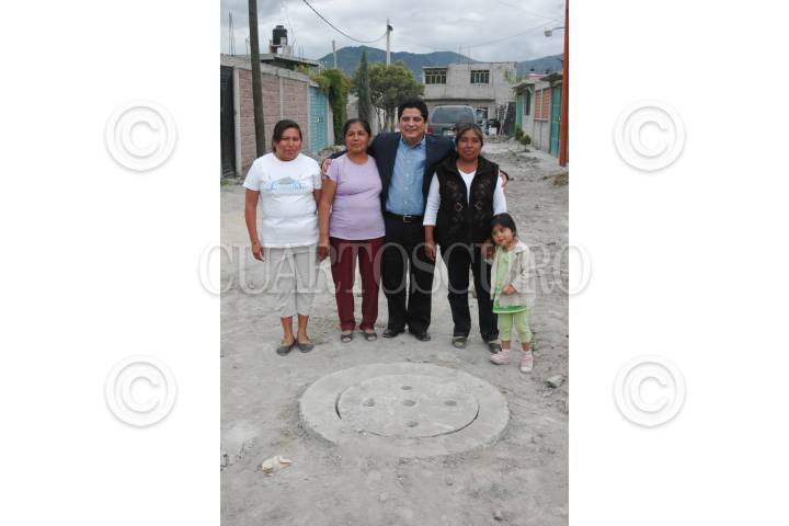 ECATEPEC, ESTADO DE MÉXICO, 10JULIO2009.- José Luis Gutiérrez Cureño, presidente municipal (centro), continúa visitando a la población de ecatepenses esto a poco más de un mes para entregar su administración. Como en la colonia Luis Donaldo Colosio, la cual hace dos años carecía de drenaje en la calle cerrada de Texcoco, este viernes le entregaron la obra hidráulica. FOTO: MARIO NULO/CUARTOSCURO.COM