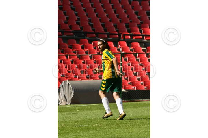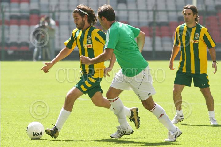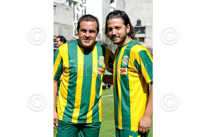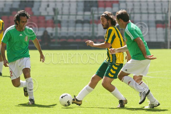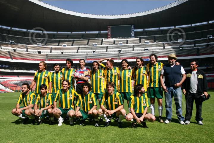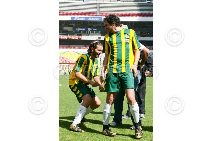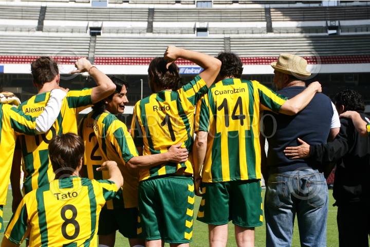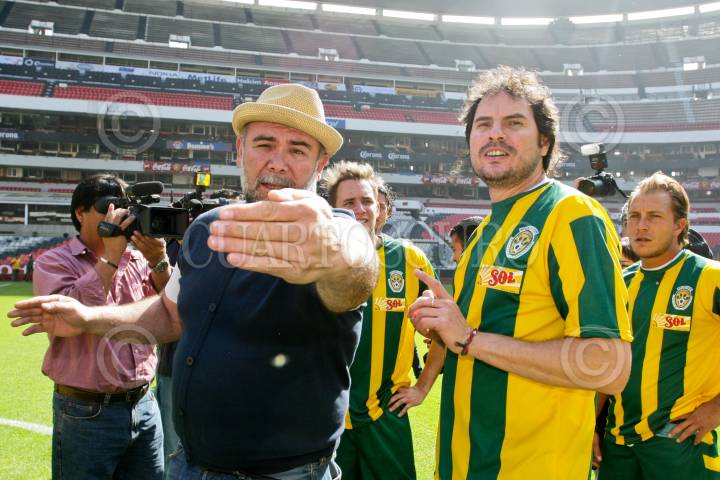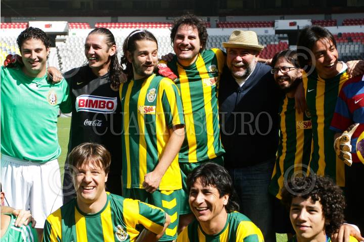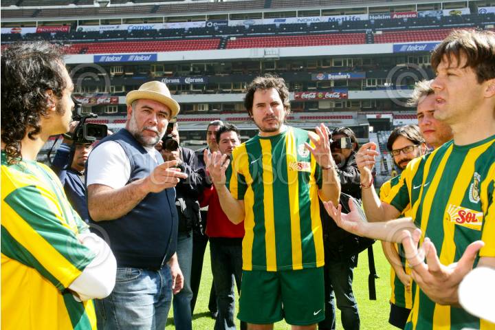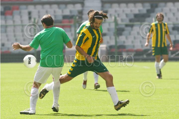 MÉXICO, D.F., 24NOVIEMBRE2008.- La producción de la película "Rudo y Cursi" jugo un partido de futbol en contra de comentaristas deportivos de Televisa. El encuentro, en el que participarón el actor Diego Luna y el director Carlos Cuarón, se disputó en el Estadio Azteca. FOTO: ISAAC ESQUIVEL/CUARTOSCURO.COM