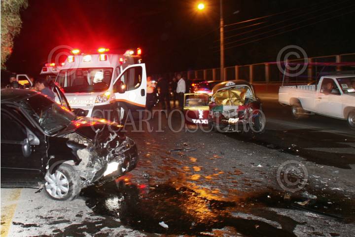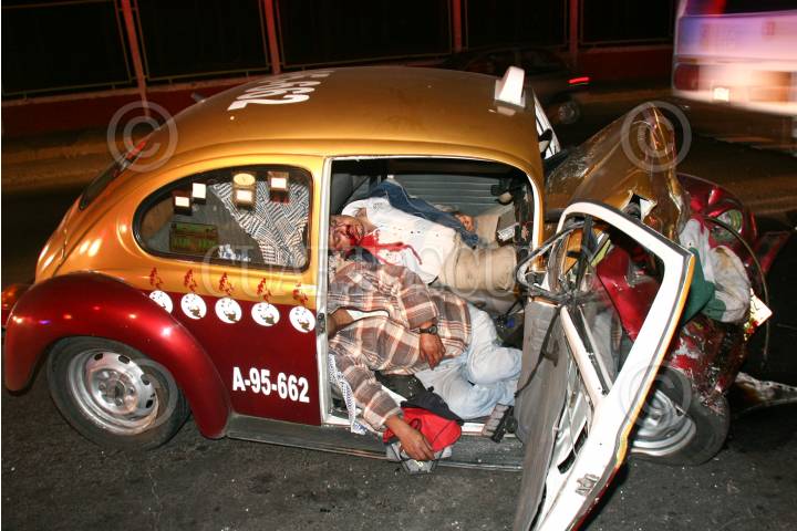 MÉXICO, D.F., 19ENERO2009.- Dos personas perdieron la vida y dos más resultaron lesionadas, entre ellos un niño después que un taxi se impactara de frente contra un vehículo particular sobre prolongación Bordo de Xochiaca en tramo conocido como "Curva del diablo". FOTO: SAÚL LÓPEZ/CUARTOSCURO.COM