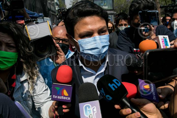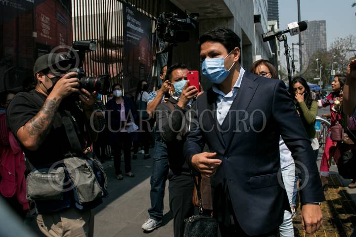 Giovanni Medina arriba a los juzgados familaires en Avenida Juárez.