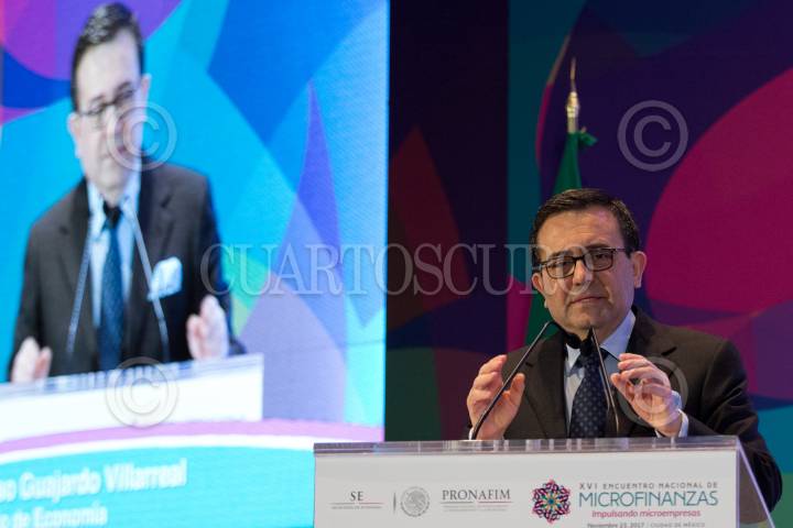 CIUDAD DE MÉXICO, 23NOVIEMBRE2017.- Ildefonso Guajardo, secretario de Economía, durante la inauguración del XVI Encuentro Nacional de Microfinanzas, el encuentro busca promover la transformación de los servicios de microfinanzas para ofrecer más y mejores productos por medio del análisis y la reflexión de temas esenciales para el sector. FOTO: GALO CAÑAS /CUARTOSCURO.COM