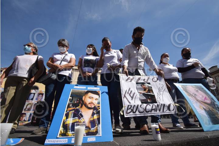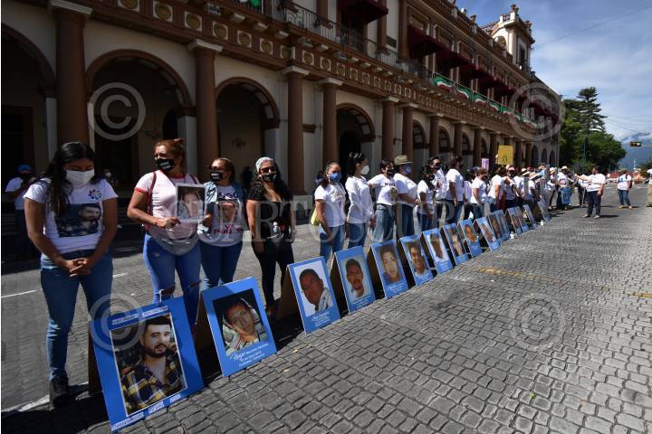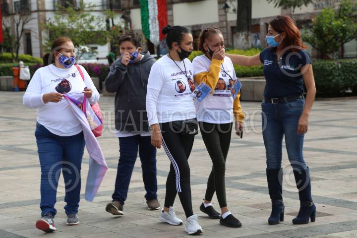 Personas que tiene a uno o varios familiares desaparecidos se manifestaron en la Plaza Lerdo de Xalapa, para exigirle a la fiscalía del Estado que no se escude en la pandemia y den avances en las investigaciones de sus seres queridos.