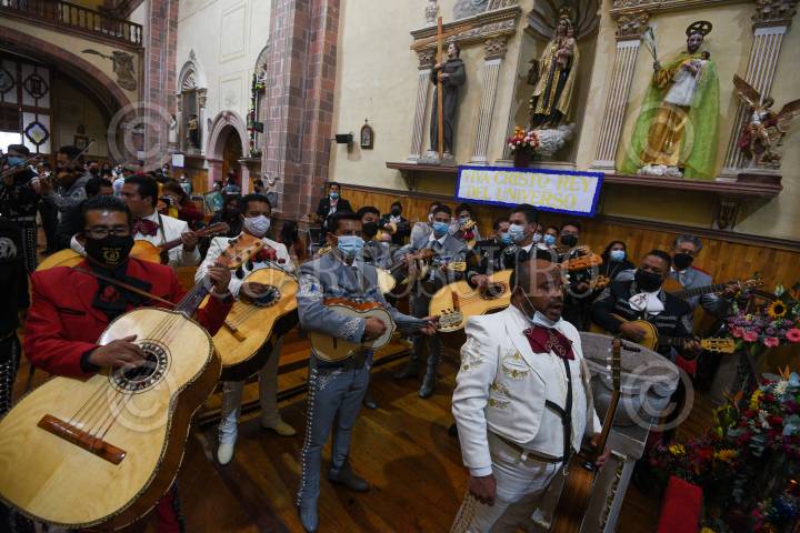 Grupos de mariachis de Calimaya festejaron a su santa patrona, Santa Cecilia con una misa en la iglesia de San Pedro y San Pablo y música en su honor.