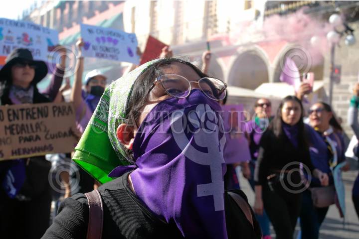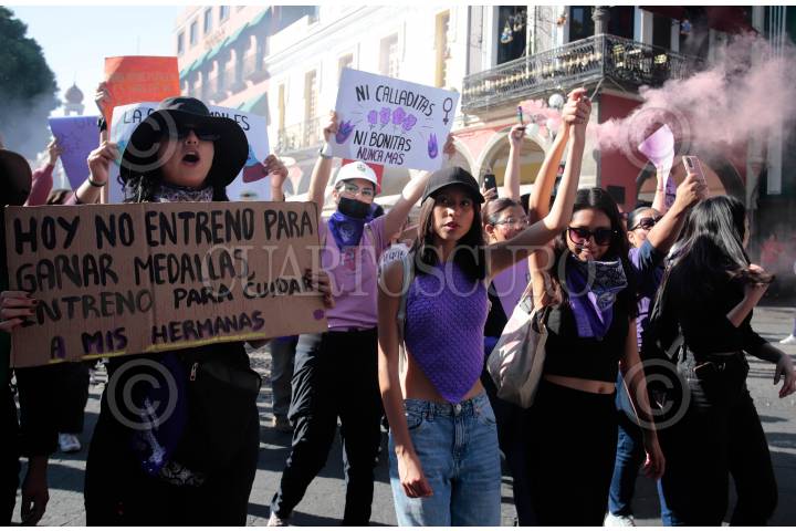 PUEBLA, PUEBLA, 8MARZO2025.- Miles de mujeres marcharon por las calles de Puebla en conmemoración del 8 de Marzo, pidiendo un paro a la violencia de género.  FOTO: MIREYA NOVO/ CUARTOSCURO.COM