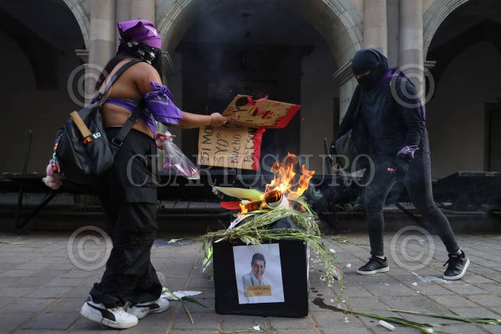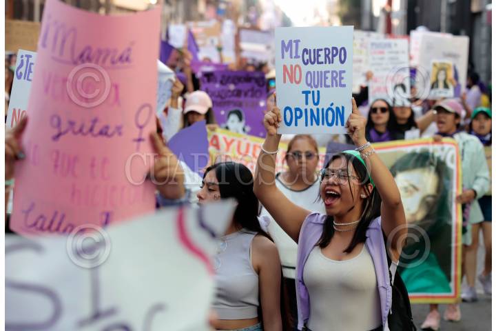 QUERÉTARO, QUERÉTARO, 08MARZO2035.- Distintos colectivos de feministas participaron en la marcha por la conmemoración del día internacional de la mujer. Partieron de la Alameda y caminaron por las calles del centro histórico culminando con un mitin en jardín Guerrero. FOTO: CÉSAR GÓMEZ/CUARTOSCURO.COM