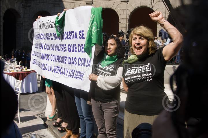 Mujeres de colectivas feministas protestaron en las inmediaciones de la Cámara de Senadores contra el oportunismo político de distintos partidos