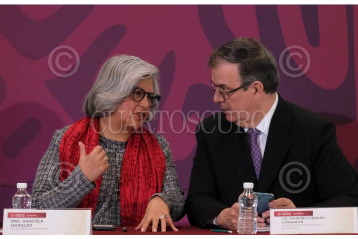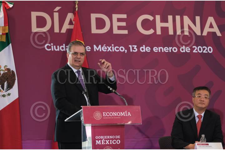 Graciela Márquez, secretaria de Economía, y Marcelo Ebrard, secretario de Relaciones Exteriores, durante la Ceremonia inaugural del "Día de China".