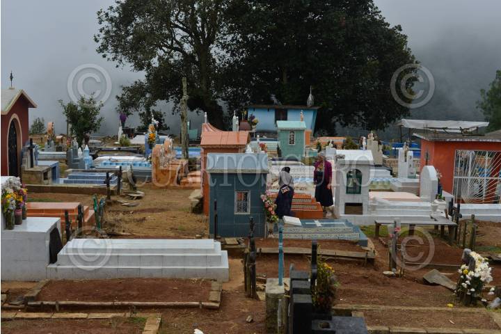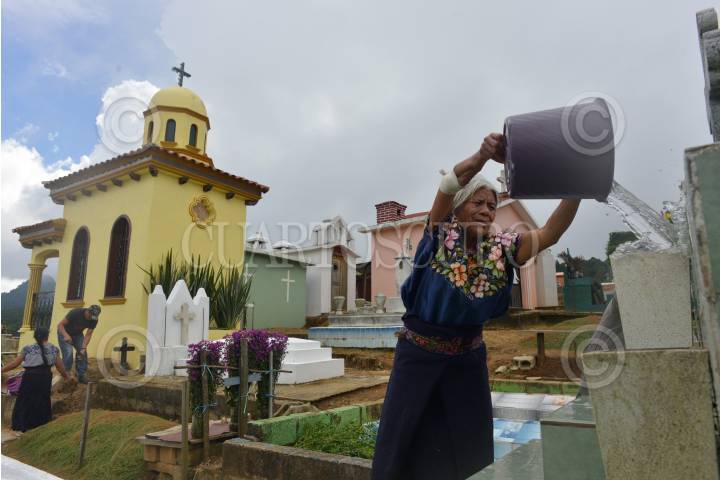 ZINACANTÁN, CHIAPAS, 31OCTUBRE2019.- Familias de la comunidad asisten al panteón de la cabecera municipal para iniciar los preparativos de la celebración del día de muertos. En el panteón se lavan las tumbas y otras familias también restauran las edificaciones que albergan a sus familiares fallecidos, para recibirlos con flores y música la noche de su visita. FOTO: ISABEL MATEOS /CUARTOSCURO.COM