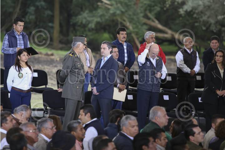 LERMA, EDOMEX, 10JULIO2015.- Enrique Peña Nieto, presidente de México, acompañando por el gobernador del estado, Eruviel Avila, Juan José Guerra, titular de la SEMARNAT, Salvador Cienfuegos, titular de la defensa y Aurelio Nuño, jefe de la oficina de la presidencia encabezaron el inició de campaña de reforestación 2015 y conmemoraron el dia del árbol. FOTO SAÚL LOPEZ /CUARTOSCURO.COM