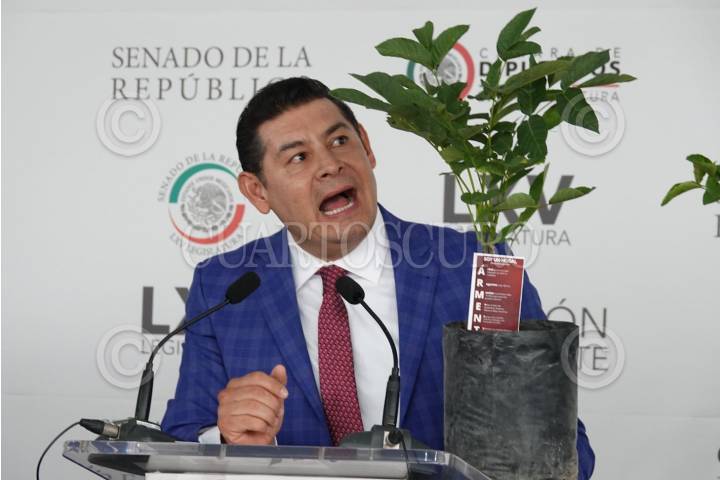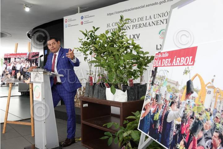 Alejandro Armenta, presidente de la mesa directiva en el Senado, ofreció una conferencia de prensa en relación al Día del Árbol, realizada en el Patio del Federalismo
