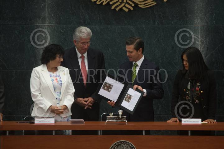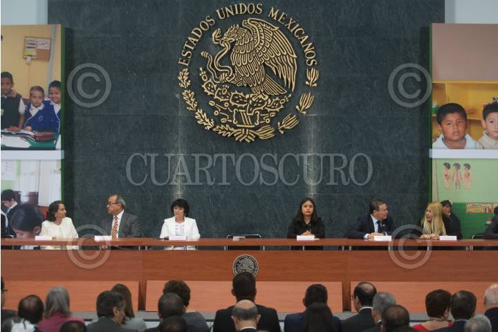 MÉXICO, D.F., 03OCTUBRE2013.- Giovanna Bruni, presidenta de la Fundación Telefónica; Alma Carolina Viggiano Austria, Directora General del Consejo Nacional de Fomento Educativo (CONAFE); y Francisco Gil Díaz, director general de Telefónica, firmaron un convenio de colaboración. FOTO: IVÁN STEPHENS /CUARTOSCURO.COM