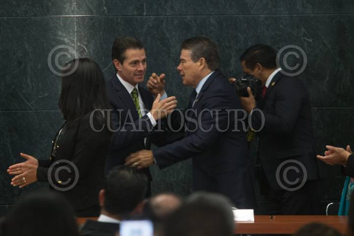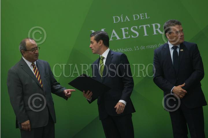 CIUDAD DE MÉXICO, 15MAYO2018.- Enrique Peña Nieto, presidente de México, y Juan Díaz de la Torre, secretario general del SNTE, durante la ceremonia de celebración del Día del Maestro. FOTO: TERCERO DÍAZ /CUARTOSCURO.COM