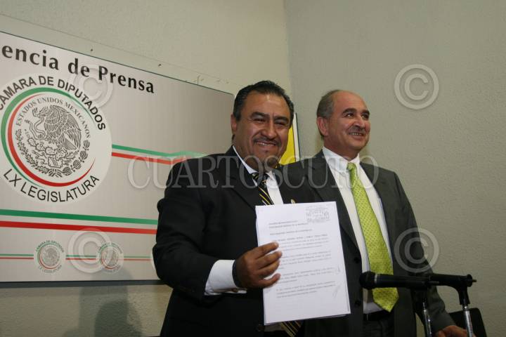 MÉXICO D.F., 27OCTUBRE2008.- Los diputados Pablo Trejo y Juan Guerra en conferencia de prensa dieron a conocer una denuncia en contra del Extitular de la Secretaria de Hacienda, Francisco Gil Díaz. FOTO: GUILLERMO PEREA/CUARTOSCURO.COM