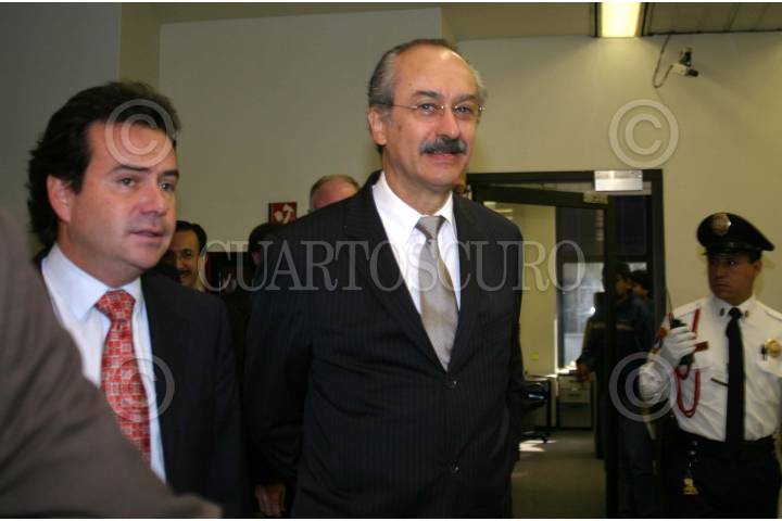 México, D.F. 04 MAYO 2004.- Guillermo Prieto, presidente de la Bolsa Mexicana de Valores y Francisco Gil Díaz secretario de Hacienda antes de a la ceremonia simbólica del campanazo de iincio de sesión. FOTO: Sandra Perdomo/CUARTOSCURO.COM