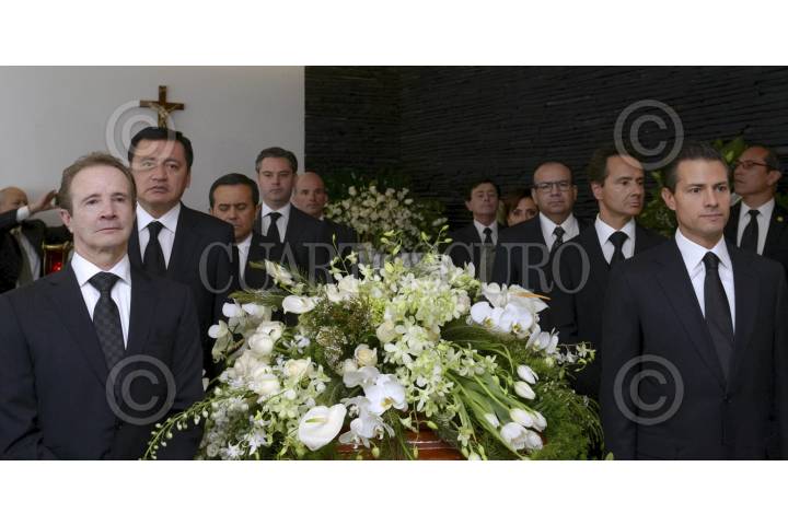 MÉXICO, D.F., 08ENERO2016.- El Presidente Enrique Peña Nieto encabezó una guardia de honor ante el féretro de Joaquín Gamboa Pascoe. Estuvo acompañado por Miguel Ángel Osorio Chong, Secretario de Gobernación; Aurelio Nuño Mayer, Secretario de Educación Pública; Alfonso Navarrete Prida, Secretario del Trabajo y Previsión Social; Rosario Robles Berlanga, Secretaria de Desarrollo Agrario, Territorial y Urbano; Ildefonso Guajardo Villarreal, Secretario de Economía, y José Antonio González Anaya, Director General del Instituto Mexicano del Seguro Social, así como por Joaquín, Armando y Alejandro Gamboa Enríquez, hijos del fallecido dirigente obrero. FOTO: PRESIDENCIA /CUARTOSCURO.COM