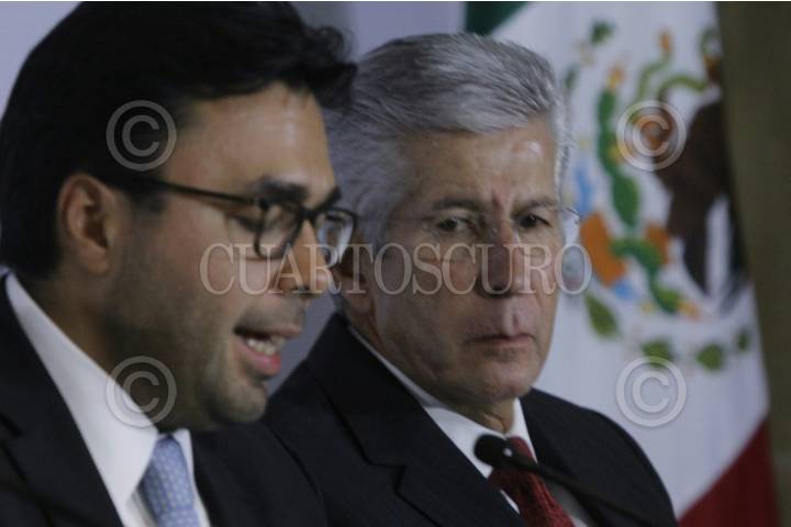 MÉXICO, D.F., 28ENERO2016.- Gabriel Contreras Saldivar Comisionado Presidente del Instituto Federal de Telecomunicaciones junto a Gerardo Ruíz durante la conferencia que realizaron ante medios de comunicación. FOTO: ENRIQUE ORDOÑEZ /CUARTOSCURO.COM