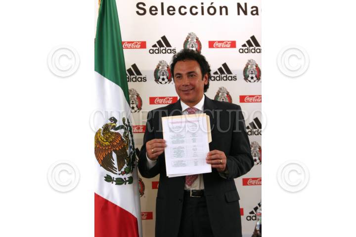 MÉXICO, D.F., 31ENERO2007.- Hugo Sánchez Márquez, D.T. de la Selección Mexicana, presentó la lista de convocados para el juego que disputarán en el Estadio Azteca, en una conferencia de prensa en la Federación Mexicana. FOTO: MOISÉS PABLO/CUARTOSCURO.COM
