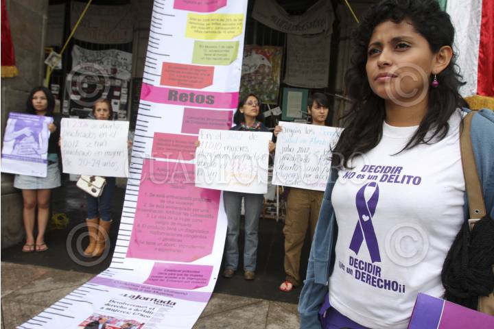 CUERNAVACA, MORELOS, 26SEPTIEMBRE2012.- Esta mañana en la plaza de armas de Cuernavaca, integrantes de la Red por los Derechos Sexuales y Reproductivos en México (DDESER), llevaron a cabo un acto llamado Kilómetros por el derecho de decidir, para promover una ley a favor del aborto en Morelos, esto en vísperas del día internacional por la despenalización del aborto (28 de Sep.). FOTOS: ALMA LAFAYET /CUARTOSCURO.COM