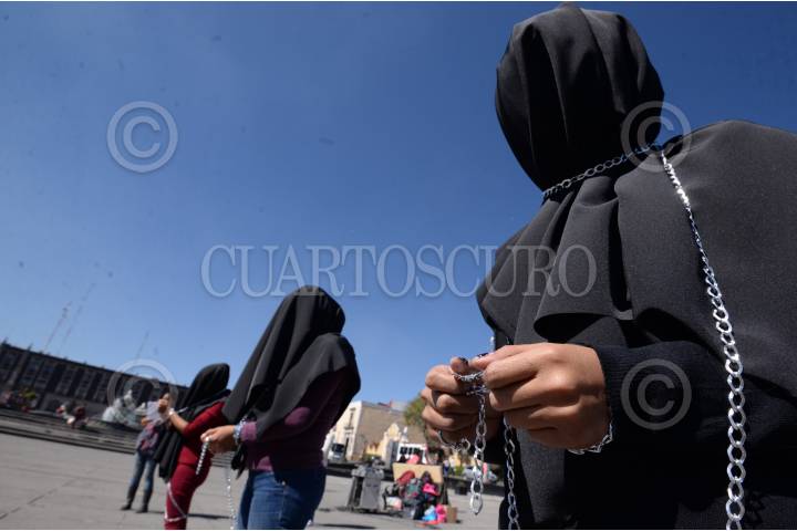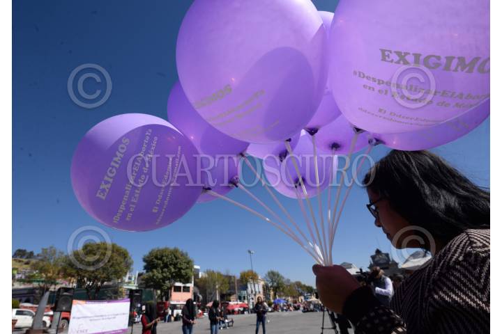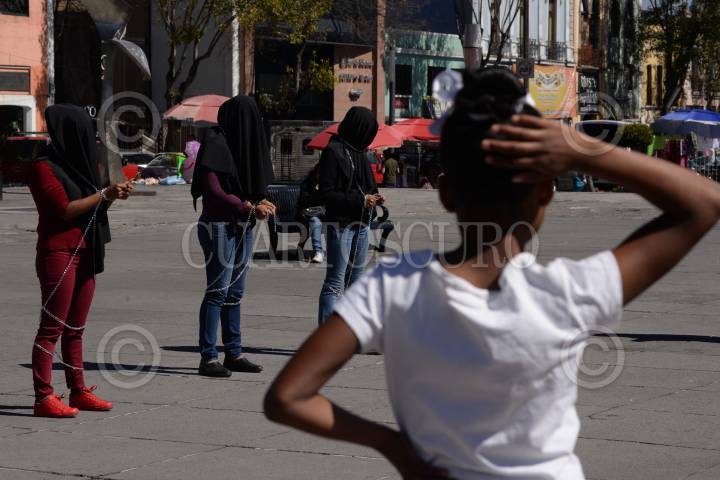 TOLUCA, ESTADO DE MÉXICO, 28NOVIEMBRE2017.- A unos días de haberse conmemorado el Día Internacional de la Eliminación de la Violenvia Contra la Mujer, integrantes de la Red por los Derechos Sexuales y Reproductivos en Mexico (DDESER) realizaron un performance en la Plaza Ángel María Garibay, exigiendo despenalizar el aborto en el Estado de México. FOTO: ARTEMIO GUERRA BAZ/CUARTOSCURO.COM