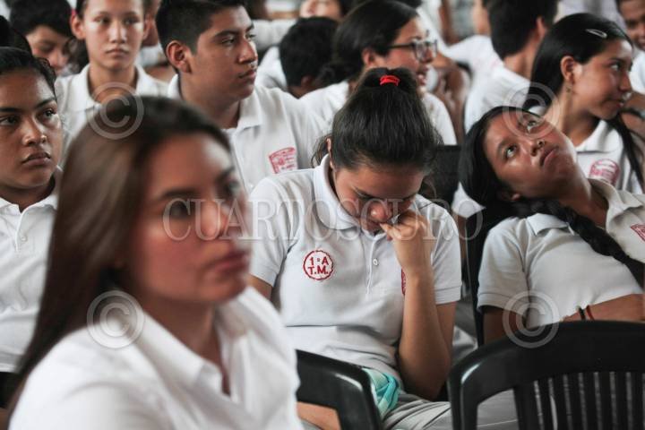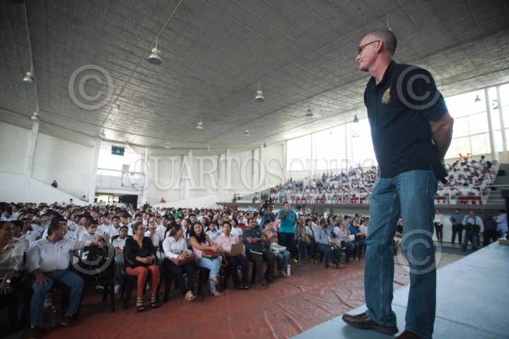 VILLAHERMOSA, TABASCO, 20SEPTIEMBRE2019.- Rocky Herron, agente especial de la Administración para el Control de Drogas (DEA), ofreció una conferencia denominada "Yo Elijo Mi Futuro” la cual fue dirigida hacia adolescentes y jóvenes de secundaria, preparatoria y universidades que organizo la SEP, INJUDET y Secretaria de Gobierno con la finalidad de dar a conocer las consecuencias que provocan el consumo de cualquier droga. El evento se llevo a cabo en el Palacio de los Deportes, en donde a mas de un educando se le llamo la atención por estar distraído, lo que causo molestia en el policía antinarcotico estadounidense. FOTO: EDGAR JASSO /CUARTOSCURO.COM