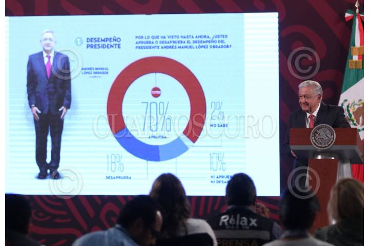 CIUDAD DE MÉXICO, MAYO2024.- Andrés Manuel López Obrador, presidente de México durante conferencia en Palacio Nacional donde muestra una encuesta de aceptación de su gobierno. FOTO: ANDREA MURCIA/CUARTOSCURO.COM