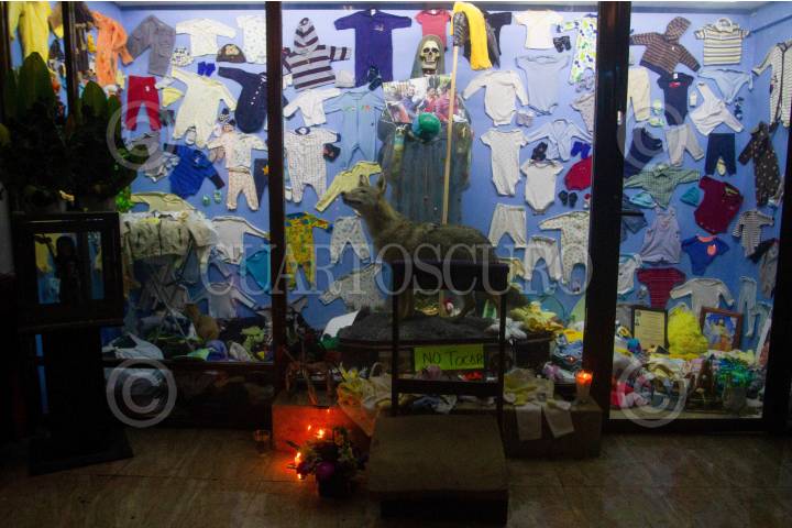Una escultura de Diabla se encuentra dentro del santuario del Palacio Negro de Luz Bella de Oscuridad, dónde se festeja al "Ángel Negro" cada primer viernes de mes